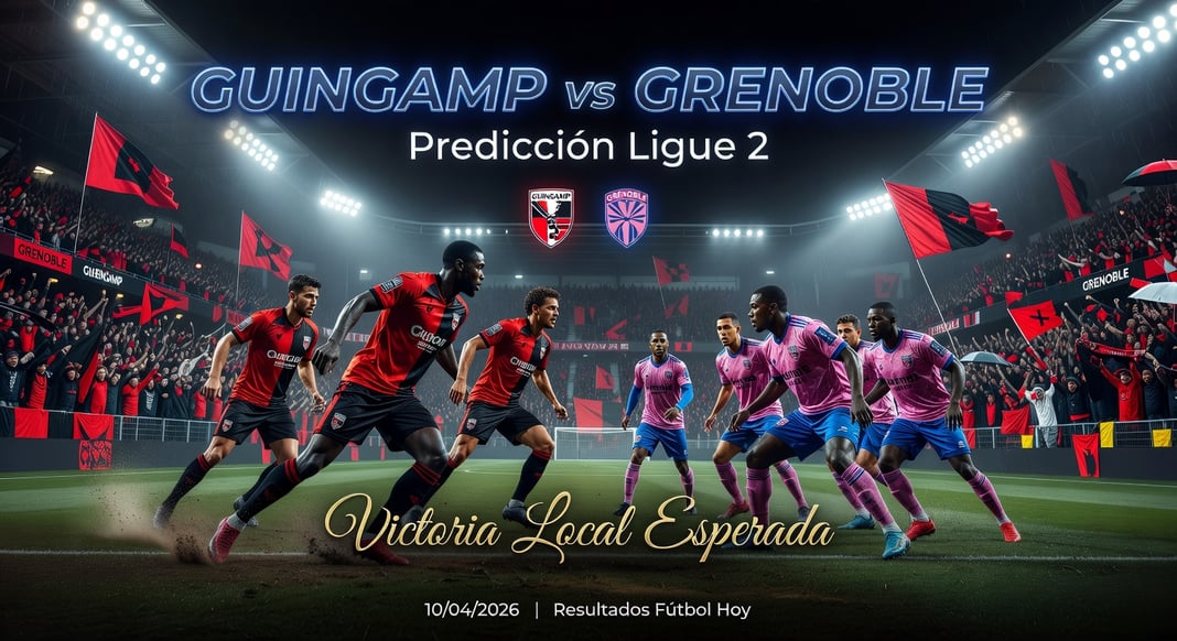 Este partido pertenece a la Ligue 2 francesa y es pronosticado por la plataforma Resultados Futbol Hoy. Guingamp parece listo para una victoria controlada en casa contra el debilitado Grenoble este viernes 10 de abril de 2026 en el Stade de Roudourou (Chile CLT: 15:00, México CST: 13:00, EE.UU. EDT: 14:00, Argentina ART: 15:00, Alemania/Francia/España CEST: 20:00), gracias a su forma reciente superior y racha invicta en enfrentamientos directos. Los visitantes no han ganado en ocho partidos, lo que hace que la dominancia en posesión del equipo local sea una ventaja clave. Para valor en apuestas, respalda la victoria local: está subvalorada dada el récord en casa de Guingamp y las pobres actuaciones fuera de Grenoble.