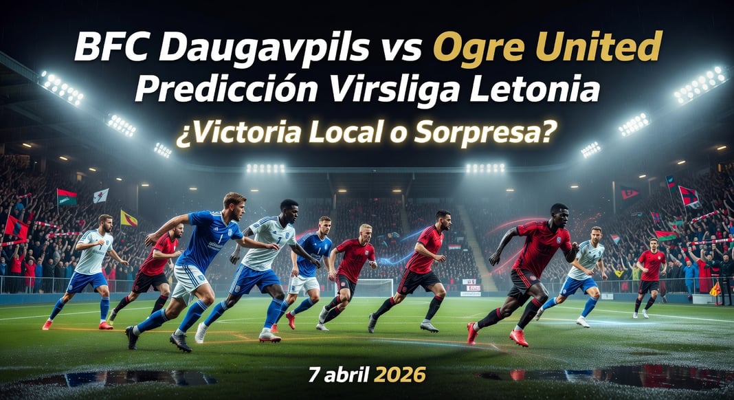 Este emocionante partido de la Virsliga de Letonia se disputará el 7 de abril de 2026 a las 12:00 CLT (Chile), 10:00 CST (México), 11:00 EDT (Estados Unidos), 12:00 ART (Argentina), 17:00 CEST (Alemania, Francia, España). En Resultados Futbol Hoy, nuestra plataforma experta en resultados de futbol hoy, predecimos que BFC Daugavpils ganará por estrecho margen en casa ante Ogre United, gracias a su reciente victoria moralizadora 2-0 sobre FK Liepaja y su sólido récord defensivo local. Ogre United, como recién ascendidos luchando en la parte baja, parecen vulnerables de visitante. Esta predicción se basa en un análisis detallado de forma reciente, alineaciones y factores clave, que detallamos a continuación. Nuestra mejor recomendación de apuesta: respalda la victoria local, que ofrece gran valor dada la desesperación de Daugavpils por salir del décimo lugar.